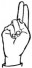 На ћирилици написано ВУКАН ГОДОЧЕВИЋ састоји се из 14 слова [?]. Исписано ћириличном једноручном азбуком за глувонеме: